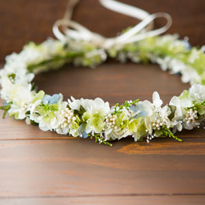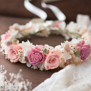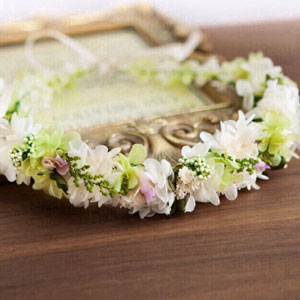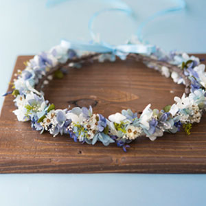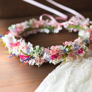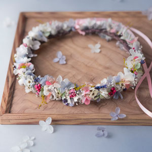| 花冠,花かんむり,ウェディング,花,ヘッドドレス | プリザーブドフラワー,ローズ,アジサイ,カスミ草 | ピンク,ブルー,イエロー,グリーン |