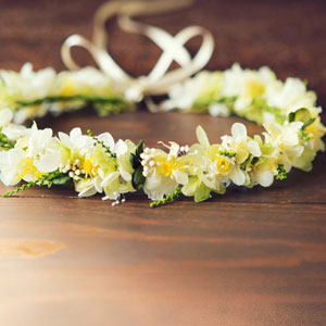 | キッズ用 アイボリーホワイトの花冠 | キッズ用 パステルカラーとグリーンの花冠 | オレンジ紫陽花のキッズ用花冠 |