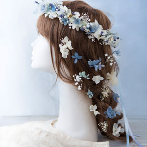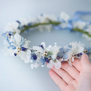 | 花冠,花かんむり,ウェディング,花,ヘッドドレス | プリザーブドフラワー,ローズ,アジサイ,カスミ草 | ピンク,ブルー,イエロー,グリーン |
